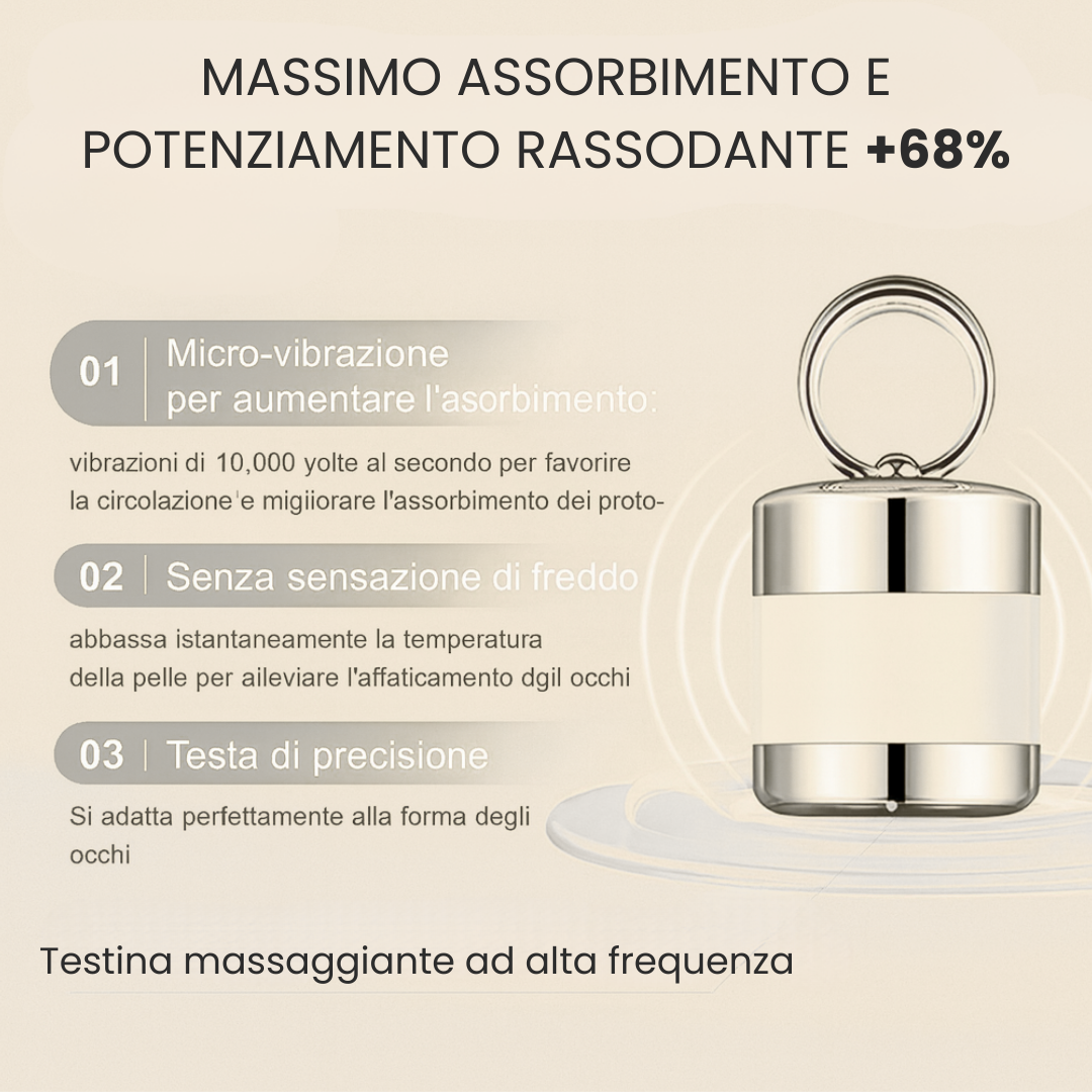 Scopri il potere della tecnologia al servizio della bellezza con il Massaggiatore LED ad Alta Frequenza, l’alleato perfetto per potenziare l’azione della tua crema contorno occhi.